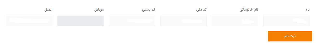 ۳- بعد از ثبت نام وارد پنل فروشندگان می شوید و نام و نام خانوادگی، کدملی، کدپستی، موبایل و ایمیل خود را وارد می‌ کنید.