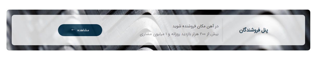 ۱- برای ثبت‌نام در پنل فروشندگان آهن مکان، به صفحه اول سایت ( بخش پنل فروشندگان) مراجعه کنید و گزینه مشاهده را بزنید.